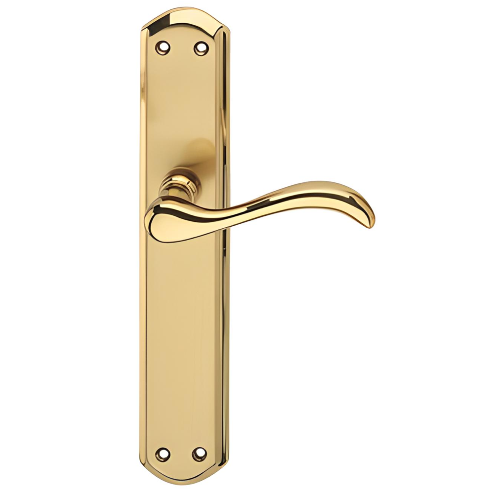 Juego de placa ovalada en latón con acabado en pulido brillo para puertas de madera de interior o exterior. Referencia: M-8011 Material: Latón Acabado: Pulido Brillo Dimensión...