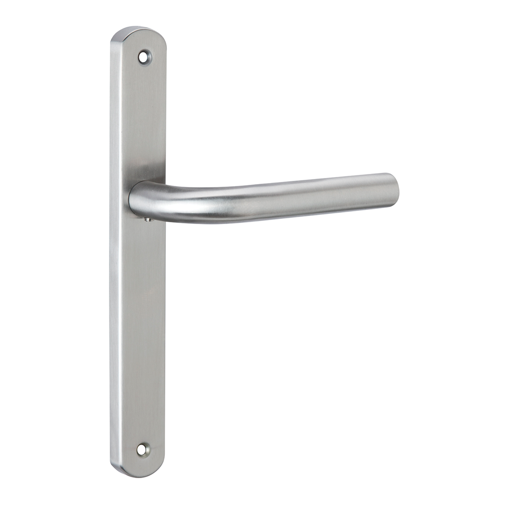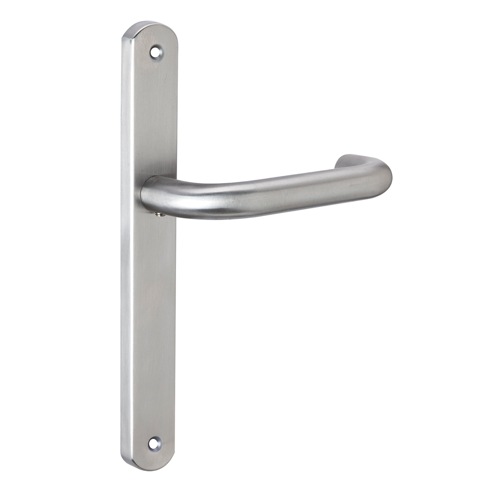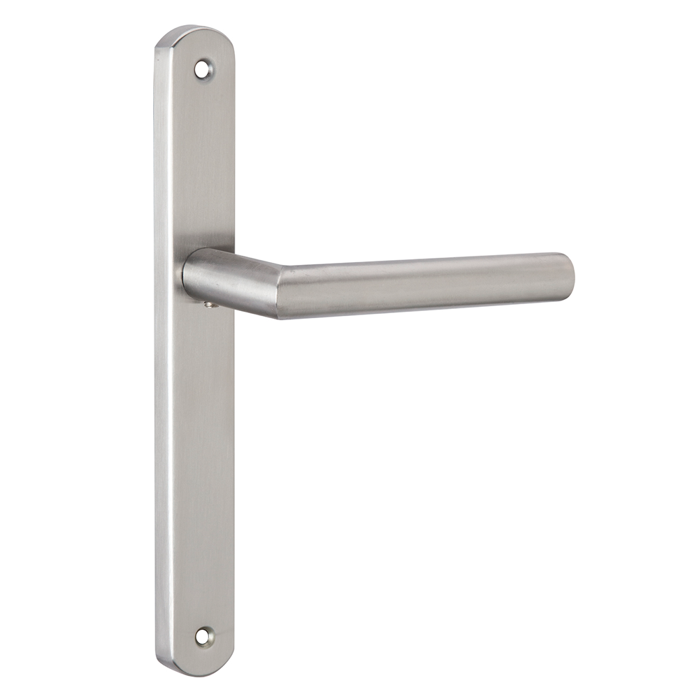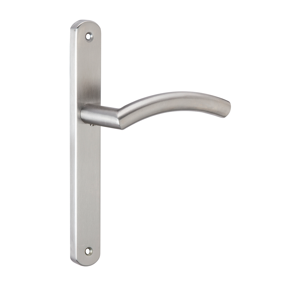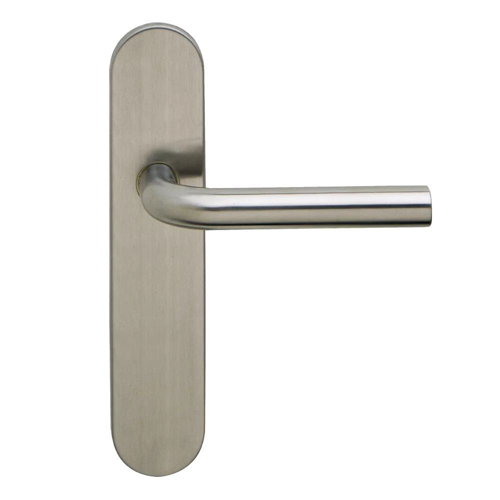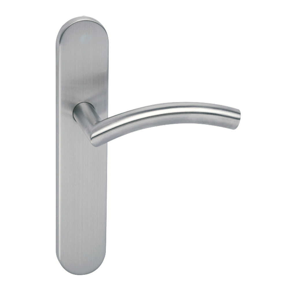 Juego de placa ovalada estrecha en acero inoxidable para puertas de madera de interior o exterior. Referencias: MVI-703 Material: Acero Inoxidable Acabados: Inoxidable Dimensión A: 30...