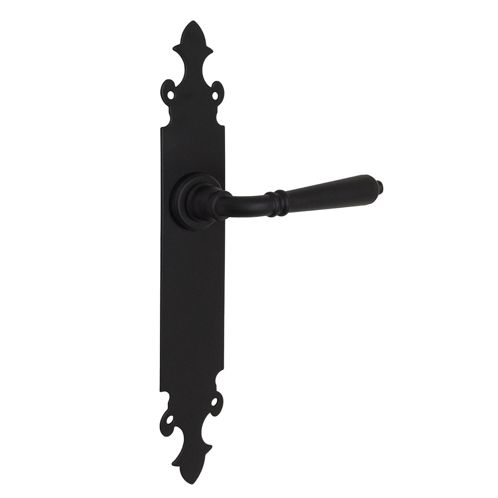 Juego de placa rectangular en acero inoxidable para puertas de madera de exterior o interior. Referencia: MRCI-8003NG Con bocallave 85 Material: Acero Inoxidable Acabado: Negro Dimensión...