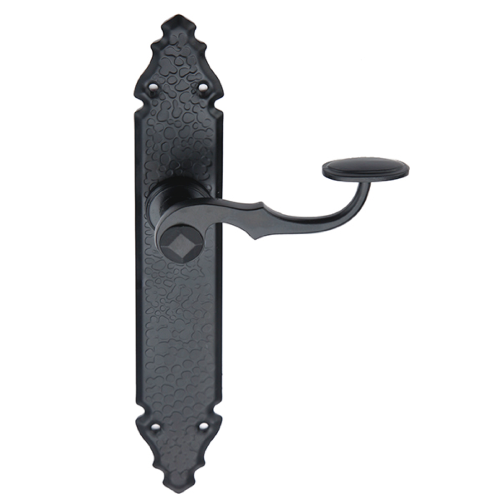 Juego de placa ovalada en forja negro para puertas de madera de exterior o interior. Referencia: MF-200 Material: Forja Acabado: Negro Dimensión A: 43 Dimensión B:...