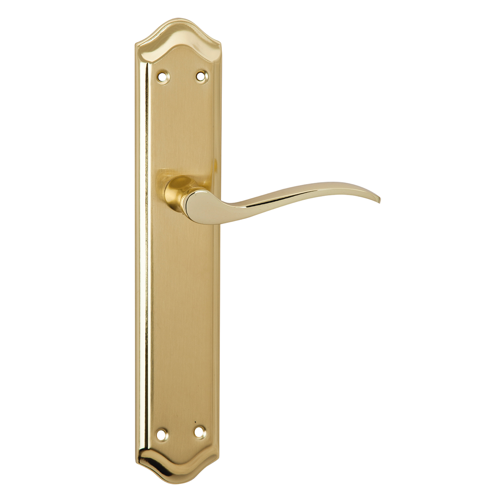 Juego de placa ovalada acabado en latón pulido para puertas de madera de interior o exterior. Referencia: MASTER PB Material: Zamak Acabado: Latón Pulido Dimensión A: 47...