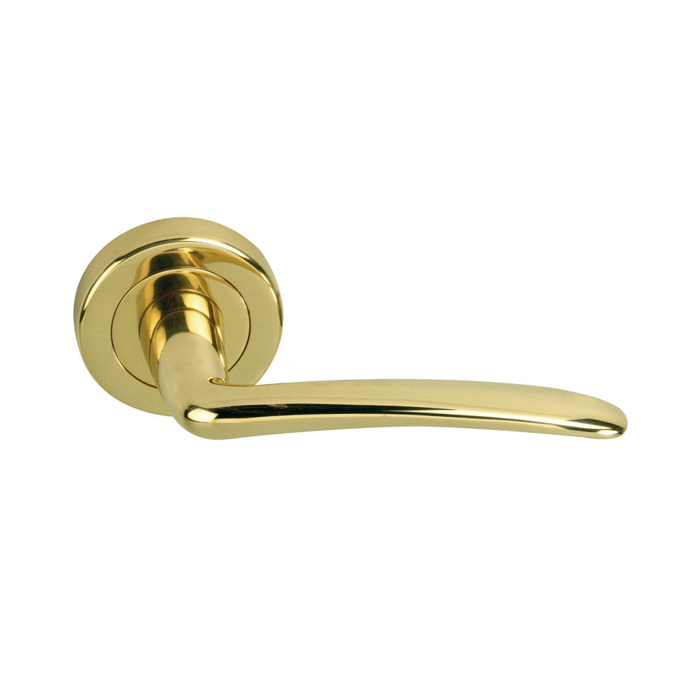 Juego de roseta redonda acabado en latón pulido para puertas de madera de interior. Referencia: R-661 Material: Zamak, Latonado Acabado: Latón Pulido Dimensión A: 52 Dimensión...