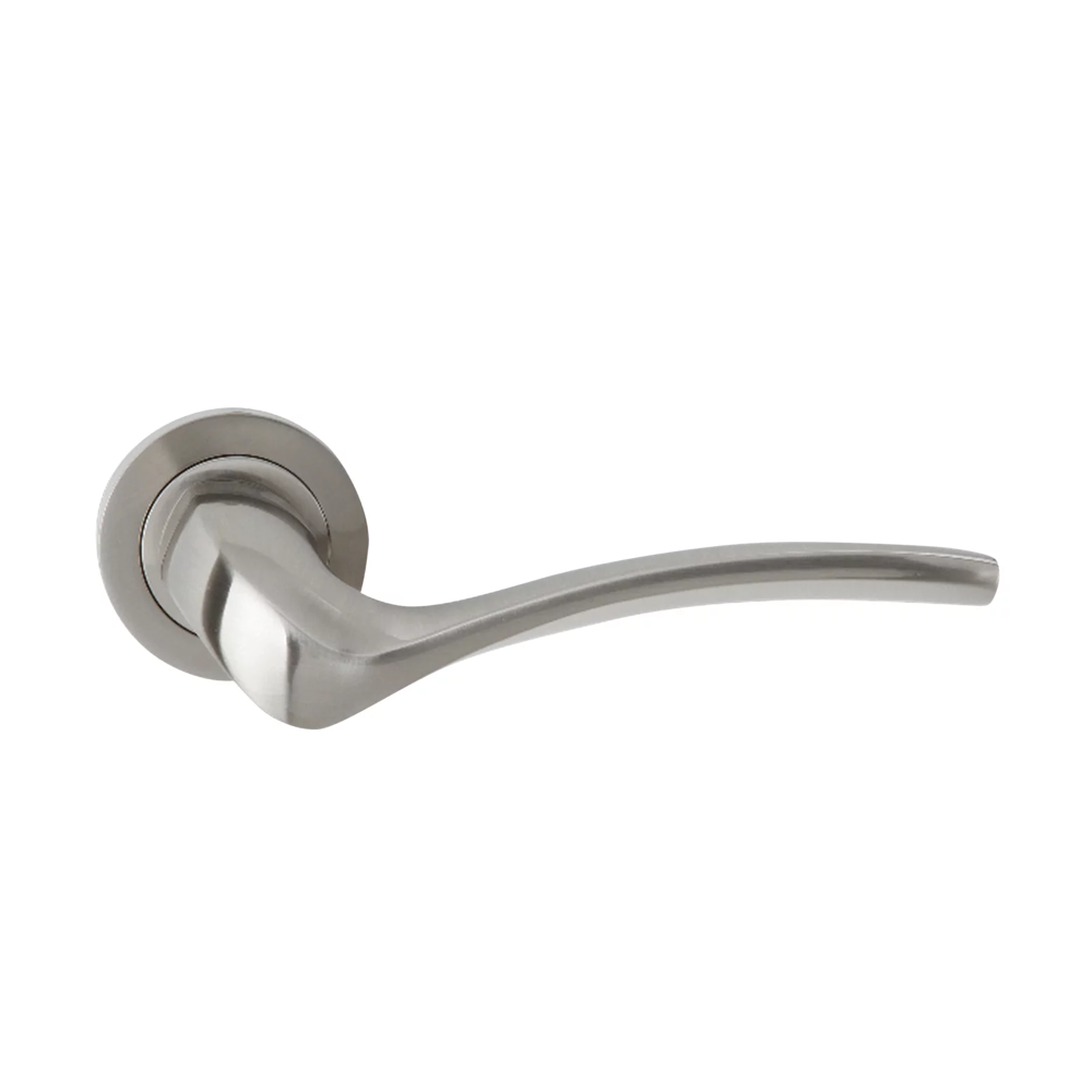 Juego de roseta redonda acabado en níquel satinado para puertas de madera de interior. Referencia: R-330 Material: Zamak Acabado: Níquel Satinado Dimensión A: 52 Dimensión B:...