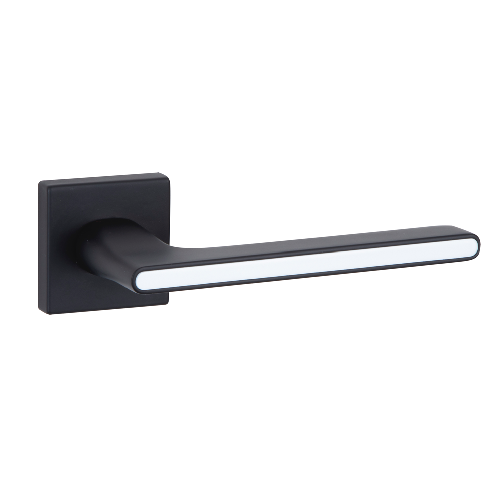Juego de roseta cuadrada acabado en negro para puertas de madera de interior. Disponible en diferentes acabados. Referencia: RCS-710N Material: Zamak Acabado: Negro Dimensión A: 53...