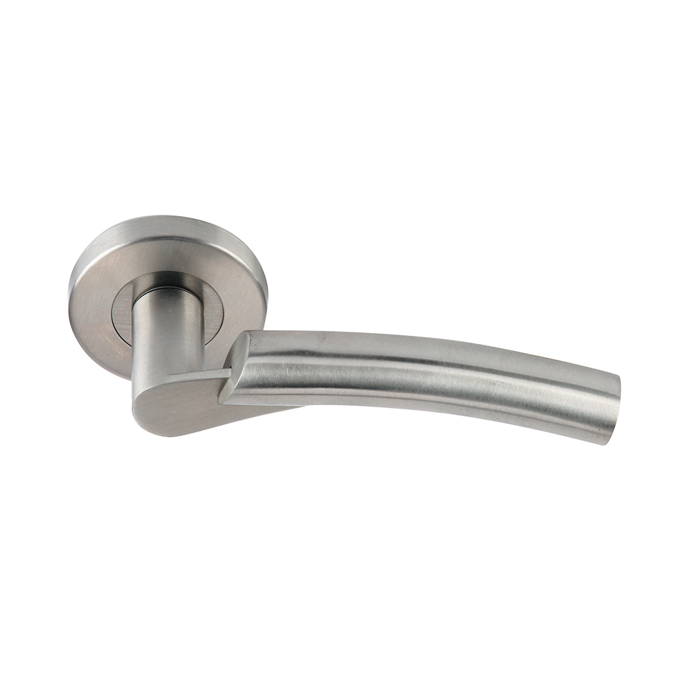 Juego de roseta redonda acabado en inoxidable para puertas de madera de interior. Referencia: RI-2025 Material: Acero Inoxidable Acabado: Inoxidable Dimensión A: 52 Dimensión B: 140