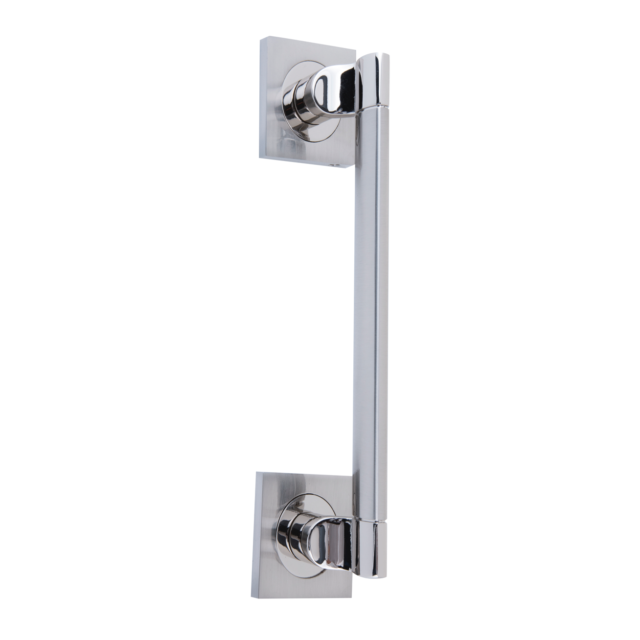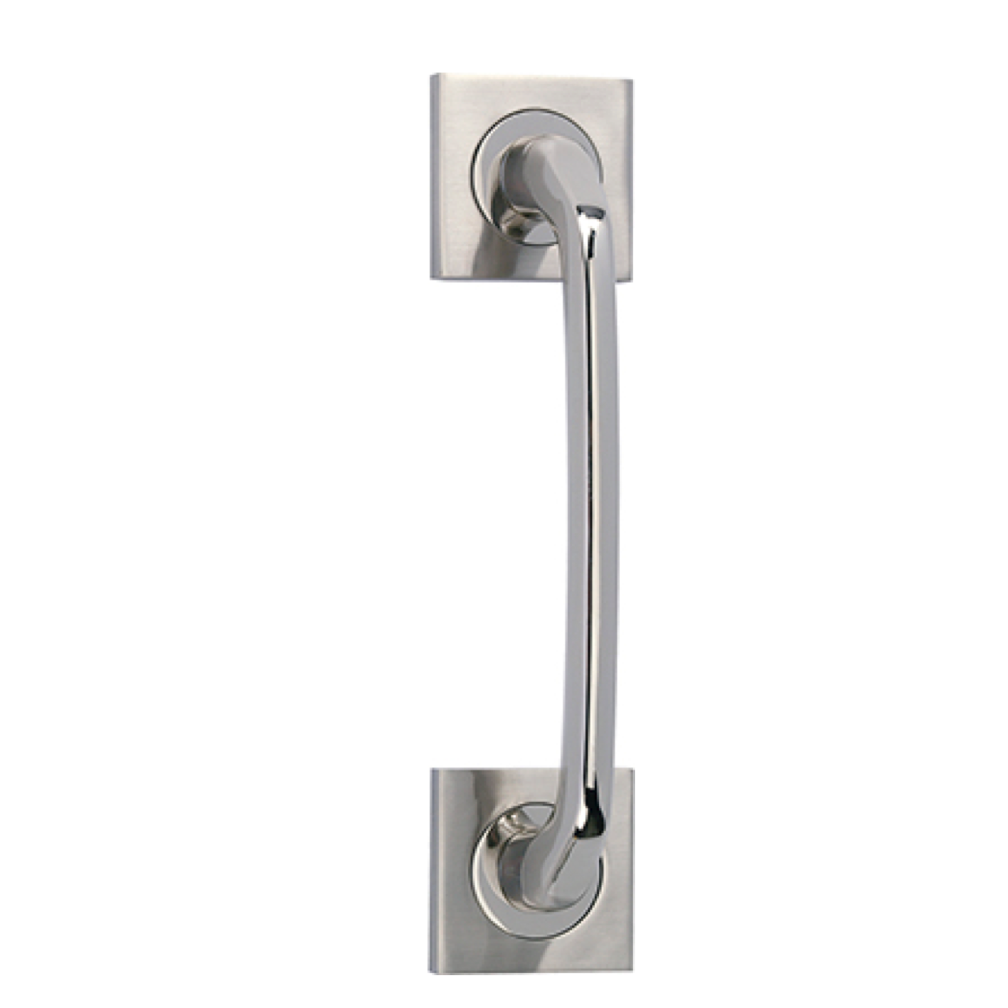 Manillón de roseta cuadrada en níquel combinado para puerta. Referencia: RC-734 Material: Zamak Acabado: Níquel Combinado Dimensión A: 52 Dimensión B: 180
