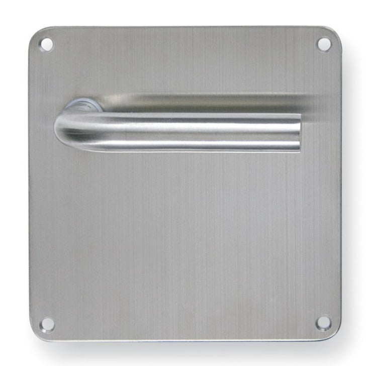 Juego de placa cuadrada en acero inoxidable para puertas de interior o exterior. Referencia: RCI-503 Material: Acero Inoxidable Acabado: Inoxidable Dimensión A: 170 Dimensión B: 170...