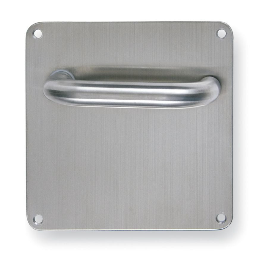 Manillón con placa cuadrada y asa tubular. Placa ciega, de limpieza. En acero inoxidable, con acabado satinado. Referencia: RCI-034 Material: Acero Inoxidable Acabado: Níquel satinado Dimensión...