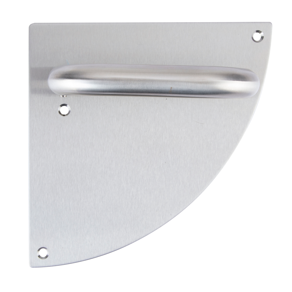 Juego de placa semicircular en acero inoxidable para puertas de interior o exterior. Referencia: RCI-603C Material: Acero Inoxidable Acabado: Inoxidable Dimensión A: 170 Dimensión B: 170...