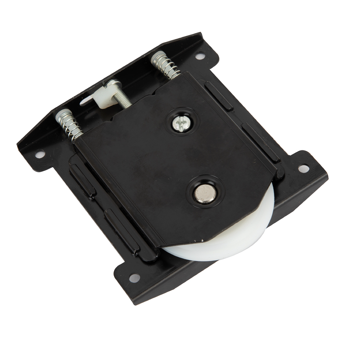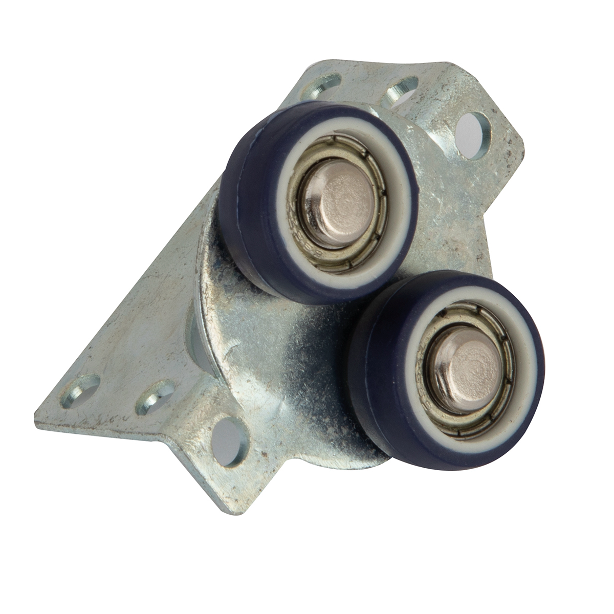 Rueda de goma negra superior de puerta corredera de armario, en acero. Referencia: U-204 Material: Acero