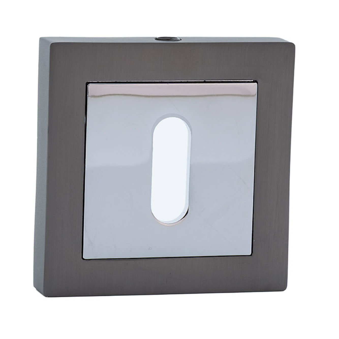 Oval keyhole with square rosette in Zamak with a graphite and shiny chrome finish. Available in different finishes. Reference: RCC-48/O Material: Zamak Finish: Graphite and Bright...