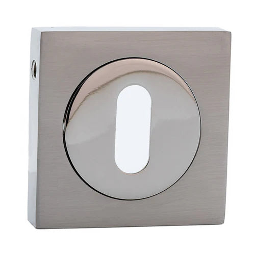 Oval keyhole with square rosette in Zamak with a graphite and shiny chrome finish. Available in different finishes. Reference: RCC-43/O SN/NP Material: Zamak Finish: Satin Nickel...