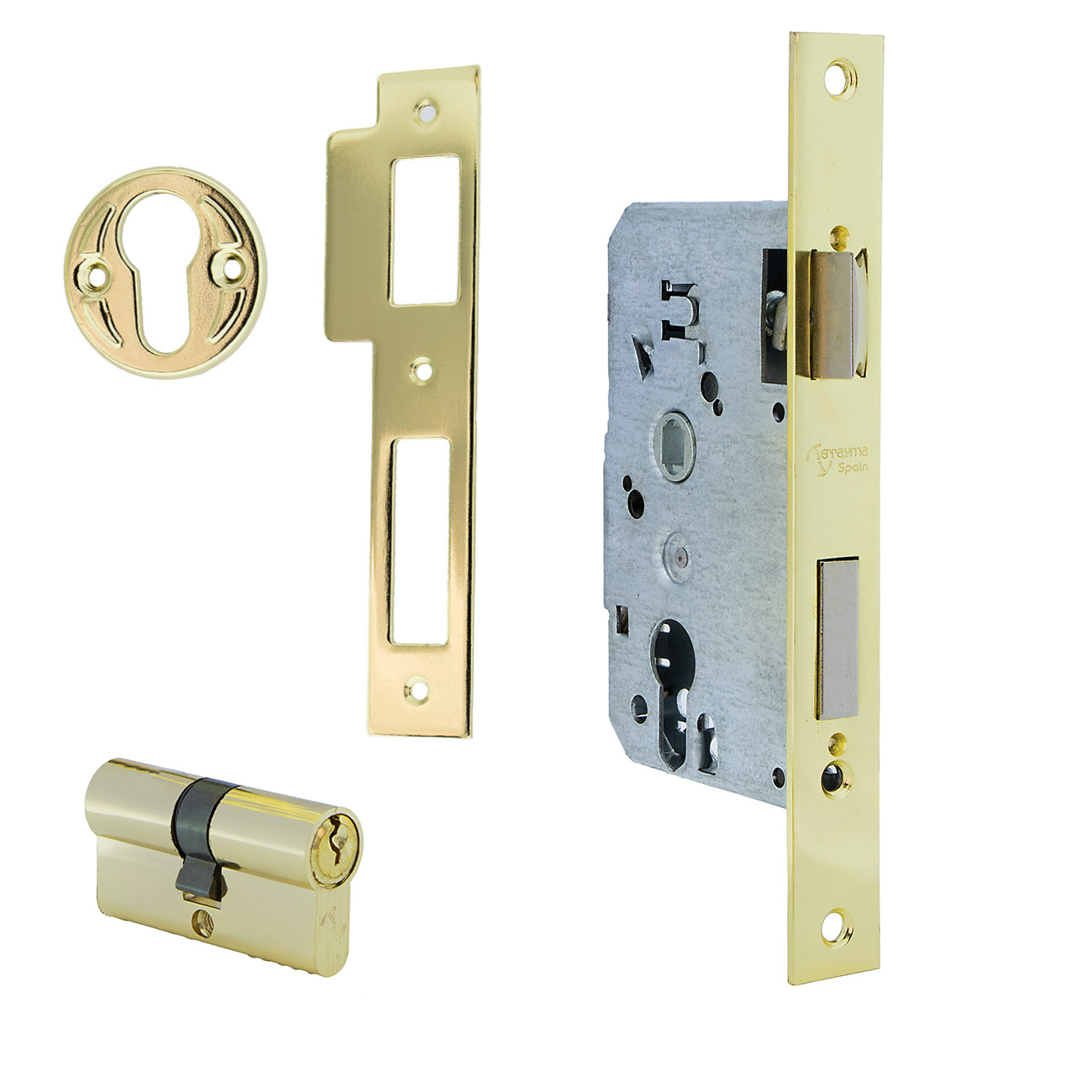 Cerradura de embutir para cilindro Europeo. Picaporte reversible de acero cromado, entrada de 40/50mm. Distancia entre ejes de 70mm. Frente en canto redondo o recto. Disponible...