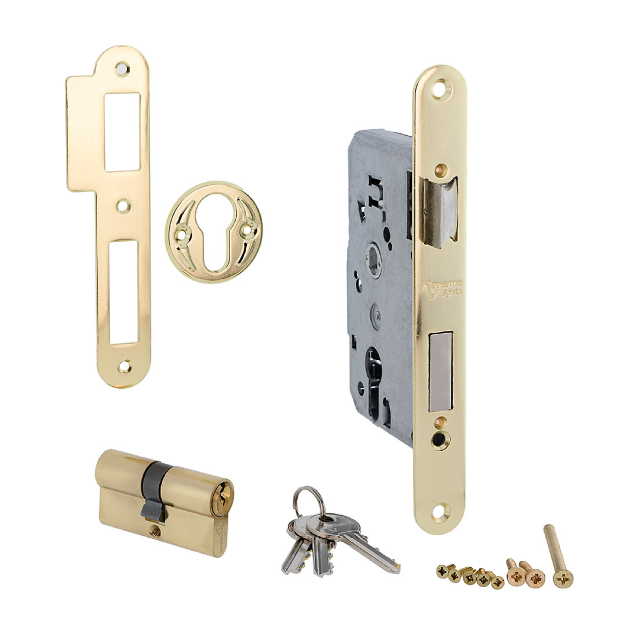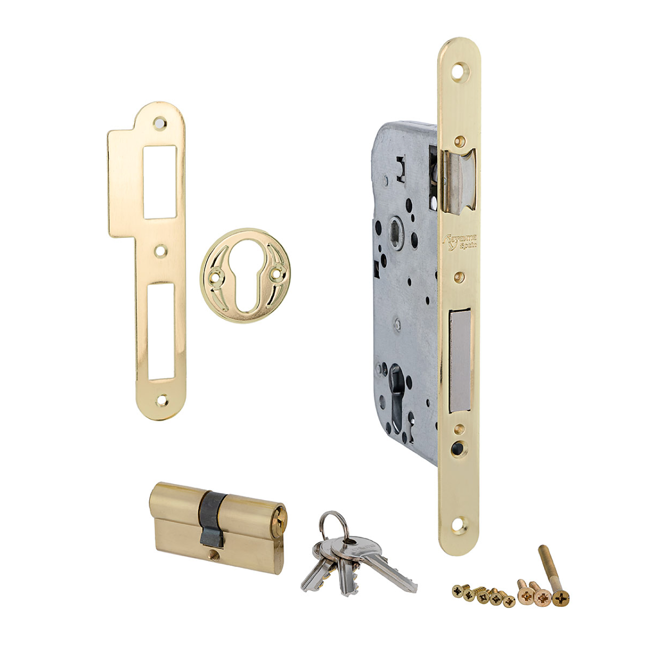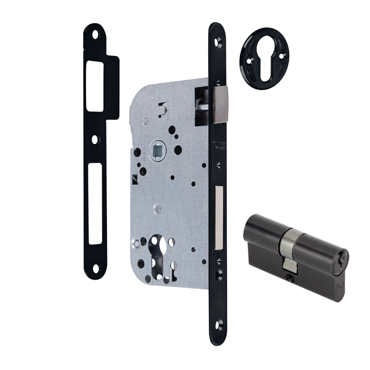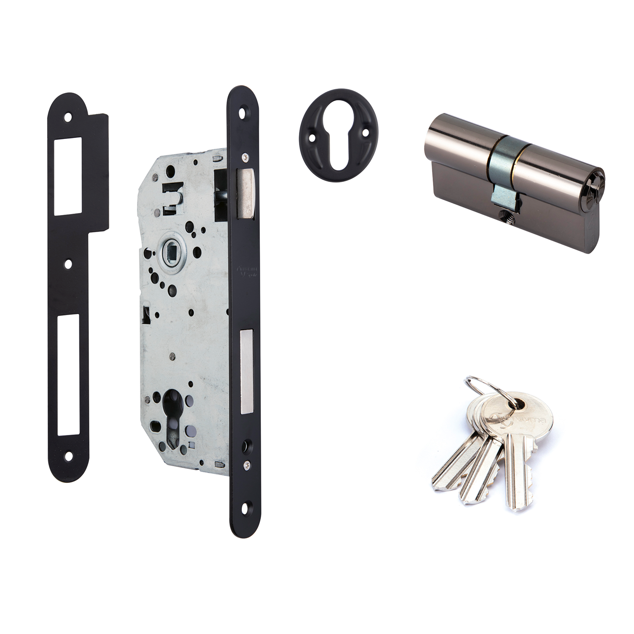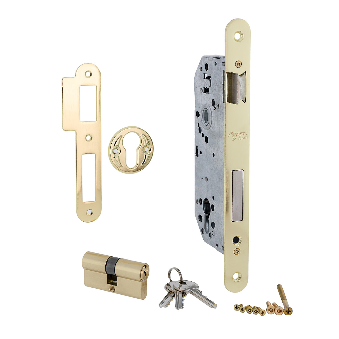 Cerradura de embutir para cilindro Europeo. Picaporte reversible de acero cromado, para entrada de 50/60mm. Frente en canto redondo o recto. Tiene 85 mm entre ejes. Disponible...