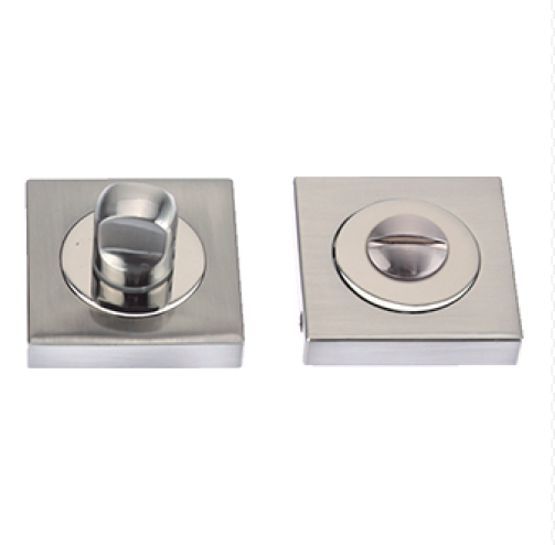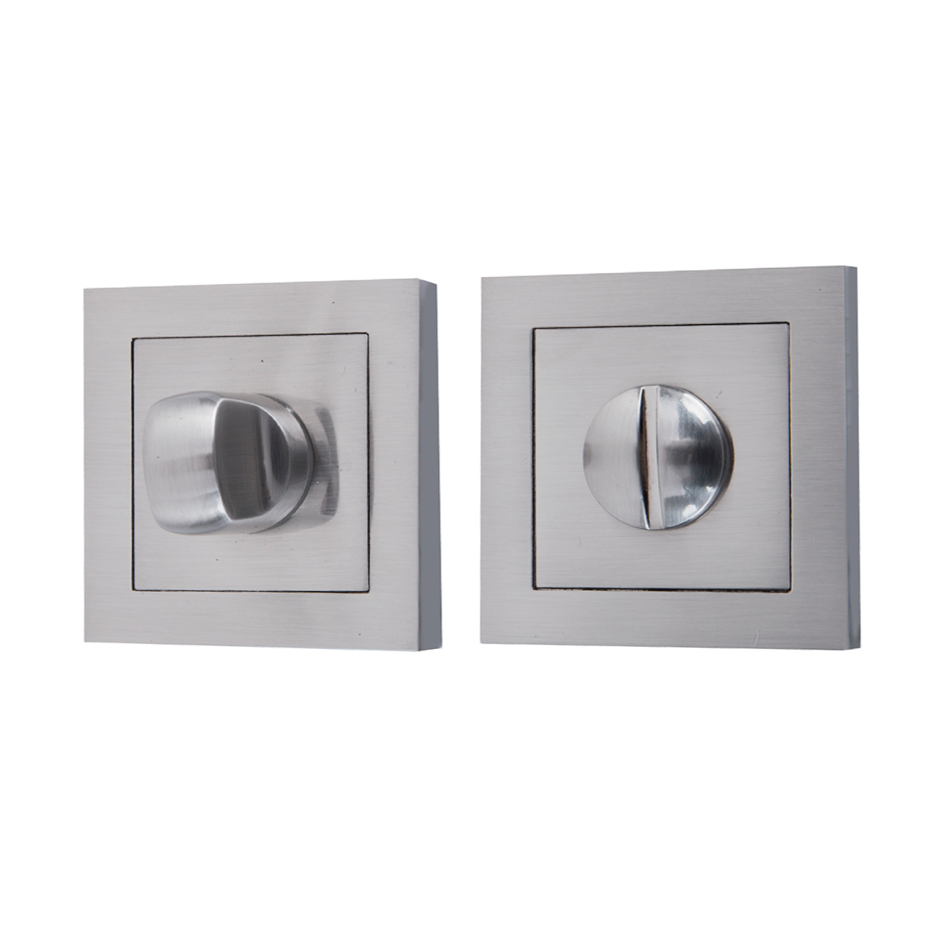 Muletilla DESCONDENA con roseta embellecedora cuadrada en zamak. Disponible en diferentes acabados. Referencia: RCC-63 Material: Zamak Acabado: Níquel Satinado Dimensión A: 50 Dimensión B: 50
