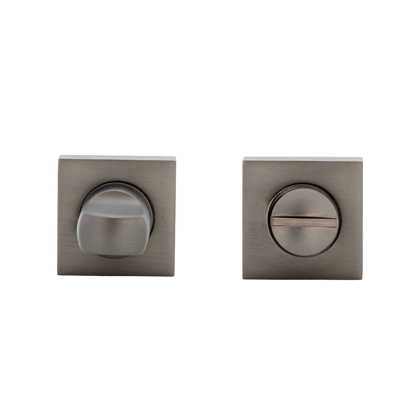 Muletilla DESCONDENAcon roseta embellecedora cuadrada en Zamak Disponible en diferentes acabados. Referencia: RC-3/G Material: Zamak Acabado: Grafíto Diámetro: 35