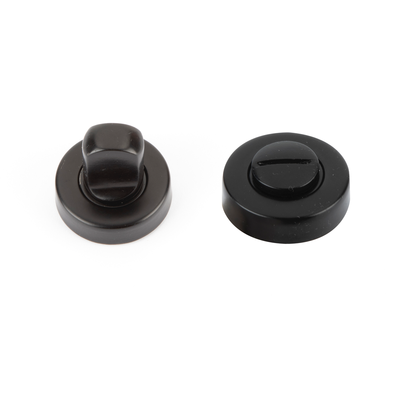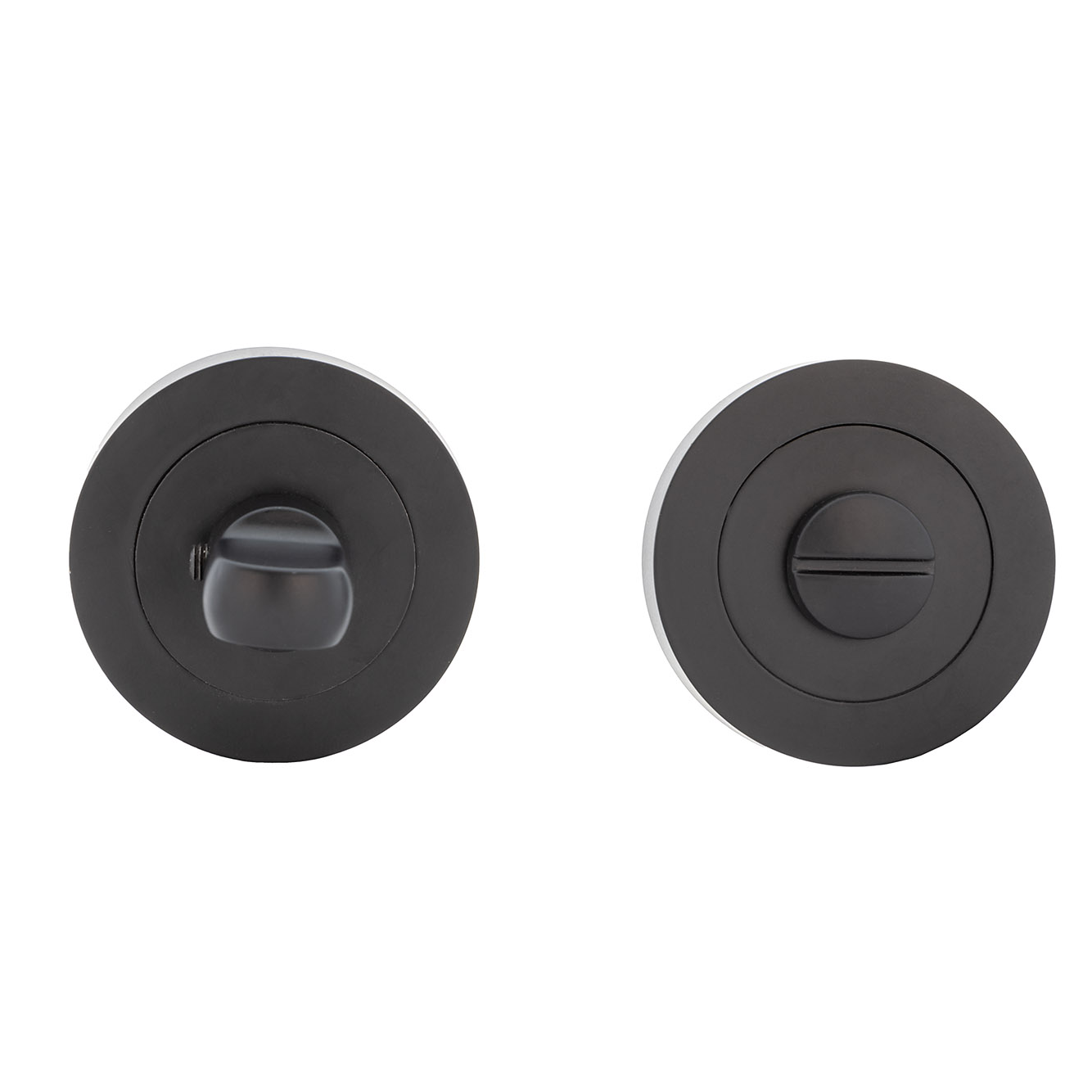 Muletilla DESCONDENA con roseta embellecedora redonda en Zamak. Disponible en diferentes acabados. Referencia: R-3N Material: Zamak Acabado: Negro Diámetro: 35