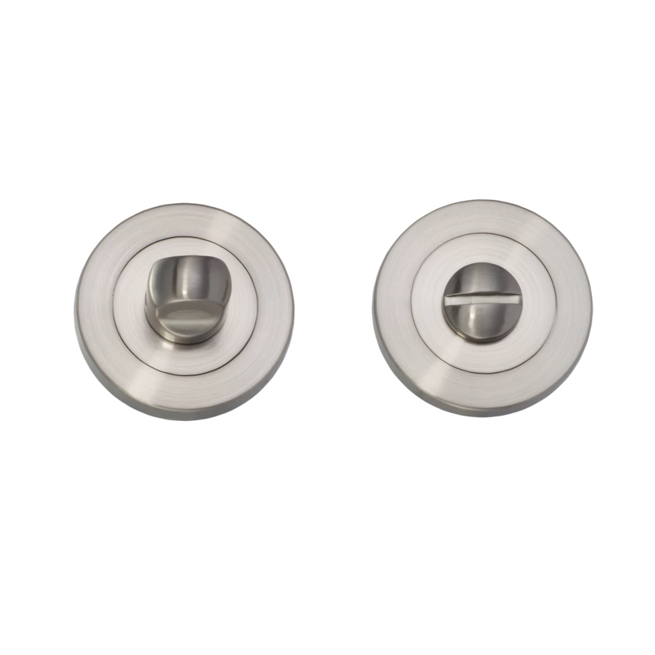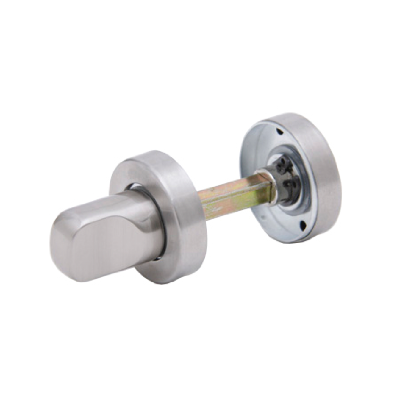 Muletilla con desbloqueo de roseta de 52 mm en Zamak. Disponible en diferentes acabados. Referencia: RS-6 SN Material: Zamak Acabado: Níquel Satinado Diámetro: 50 mm