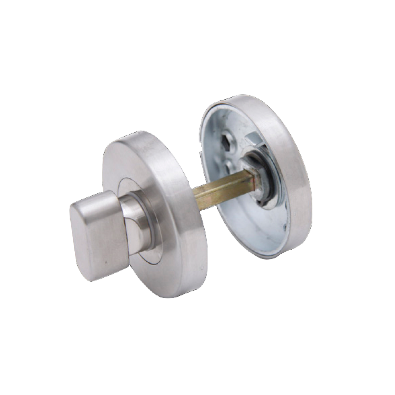 Muletilla con desbloqueo de roseta de 52 mm en Zamak. Disponible en diferentes acabados. Referencia: RS-6 LM Material: Zamak Acabado: Latón Mate Diámetro: 50